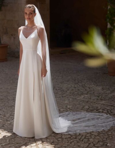 Ein Schleier verleiht deinem Auftritt Leichtigkeit, Tiefe und Emotion. Bei Stina Jon Riga findest du Schleier in verschiedenen Längen, Materialien und Stilrichtungen – von schlicht und zurückhaltend bis fein bestickt und detailverliebt. Für einen Moment, der still und schön zugleich ist.